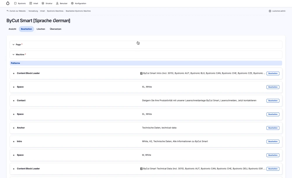 Die Bystronic-Website basiert auf dem Content-Management-System Drupal, der Publishing-Plattform unserer Wahl. Das ist sie auch, weil damit Mehrsprachigkeit, Internationalisierung und komplexe Rechteverwaltung nicht nur möglich sind – sondern Kernbestandteil.